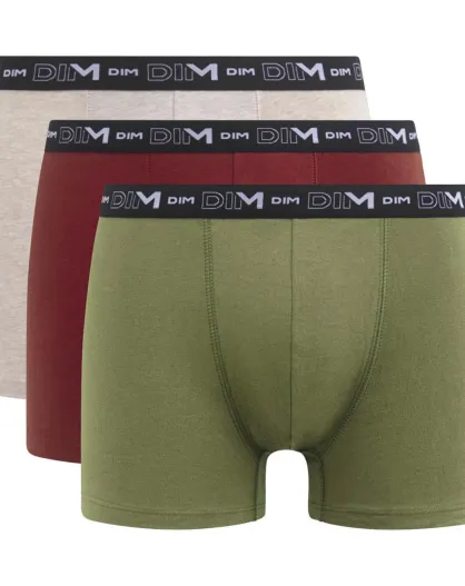 3 Boxers Coton Stretch beige crème/rouge vin/gris kaki