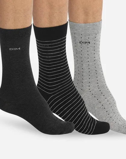 3 Paires de chaussettes Coton Style noir/anthracite chiné/gris clair chiné