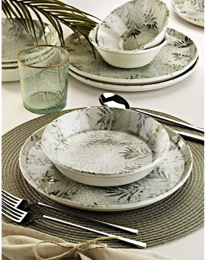 Service de table en porcelaine - 18 pièces blanc/anthracite