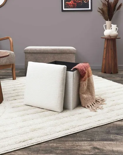 Coffre pouf pliable cotelé scott beige - 38x38x38 cm