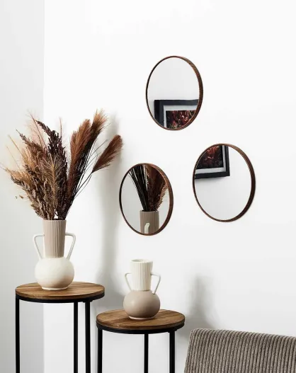 3 miroirs toronto imitation bois marron - D.26.3 cm