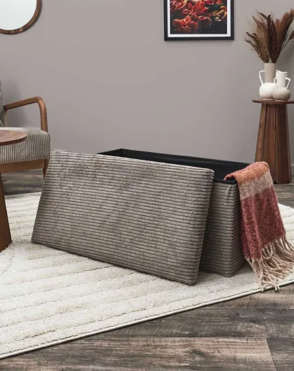 Coffre pouf pliable cotelé scott taupe - 76x38x38 cm