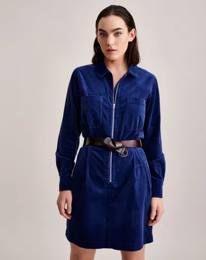 Robe en Velours milleraies Lucile bleue
