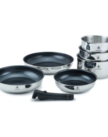 Batterie de cuisine amovible astuces induction - 10 pièces gris