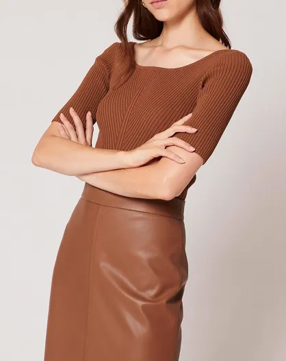 Pull Clémentine, col roulé, épaule dénudée marron moka