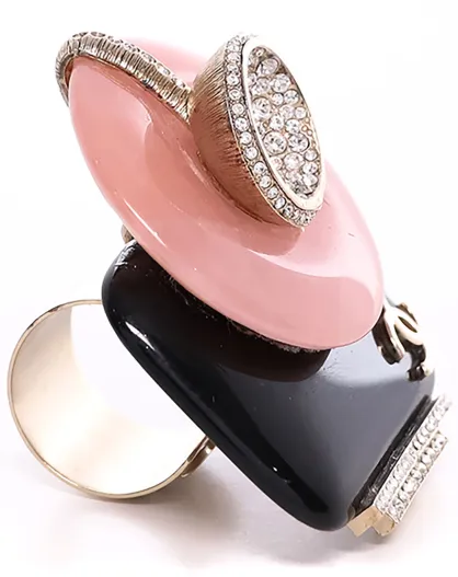 Bague en Email rose/noir/doré - Bon état