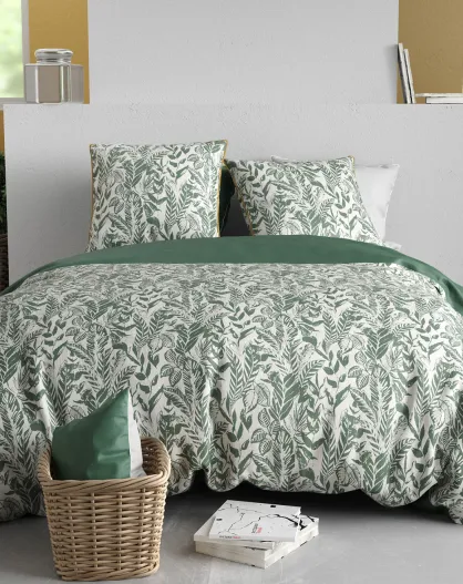 Parure housse de couette imprimée Cassia sauge