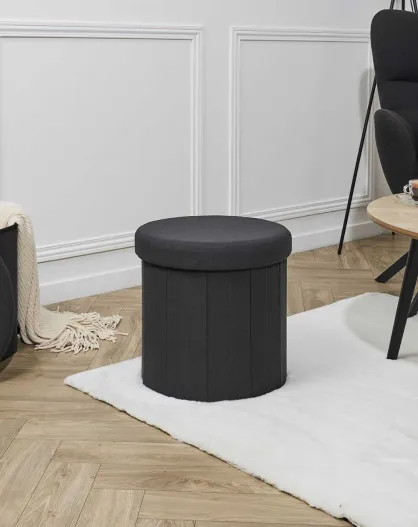 Coffre pouf pliable pills noir - 38x38x38 cm