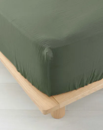Drap Housse Angelia Gaze de Coton bonnet 30 cm kaki