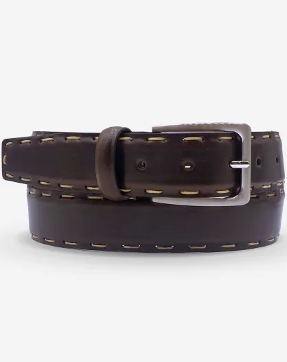 Ceinture ville bord surpique boucle rectangle Lysiane tabac