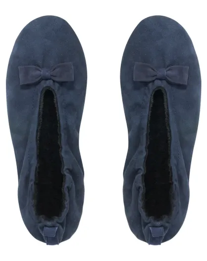 Chaussons charentais fourrés Laine bleu marine bord marine