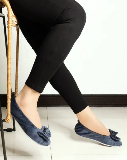 Chaussons charentais fourrés Laine bleu marine bord marine