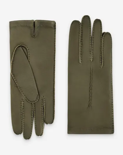 Gants cuir agneau-100% soie-21590SN-khaki