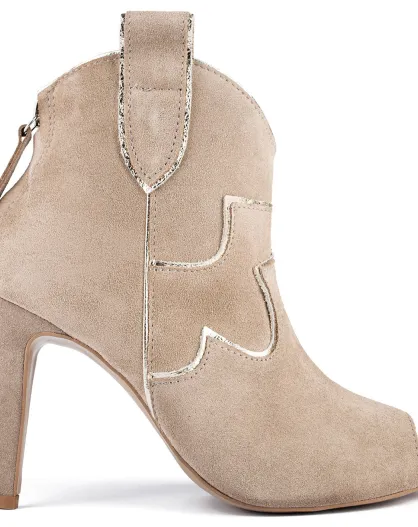 Bottines en Velours de Cuir Head Over Heels beiges - Talon 10 cm