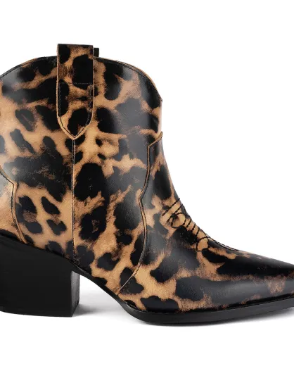 Bottines en Velours de Cuir Nevada léopard - Talon 7 cm