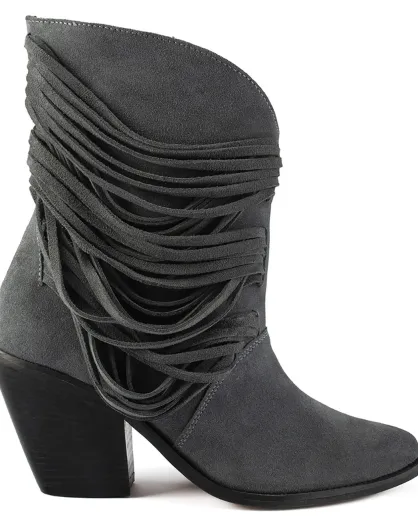Bottines en Velours de Cuir One Of The Girls grises - Talon 9 cm