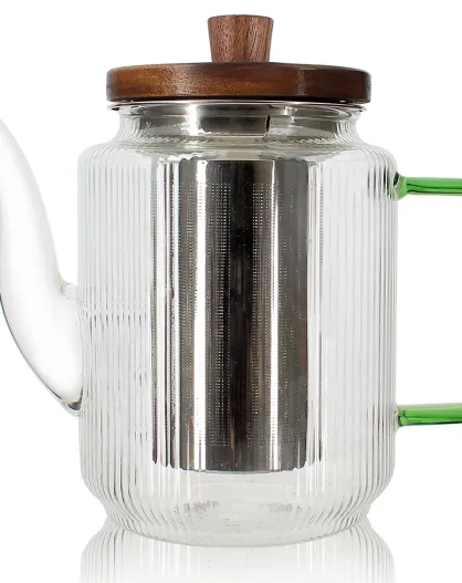 Tisanière avec couvercle en Grès & Acacia Juliet blanc/inox/naturel - 300ml
