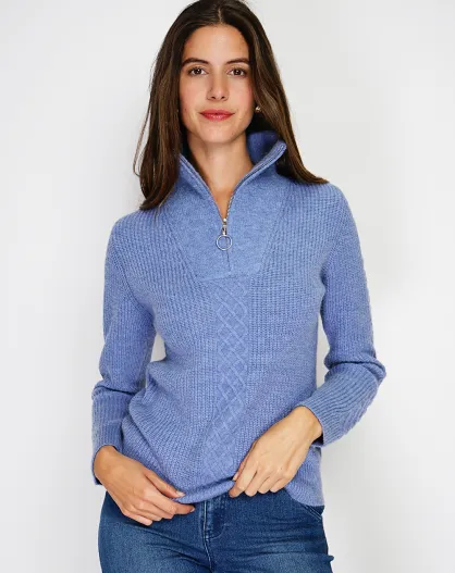Pull en Cachemire mélangé zippé Olga bleu jeans