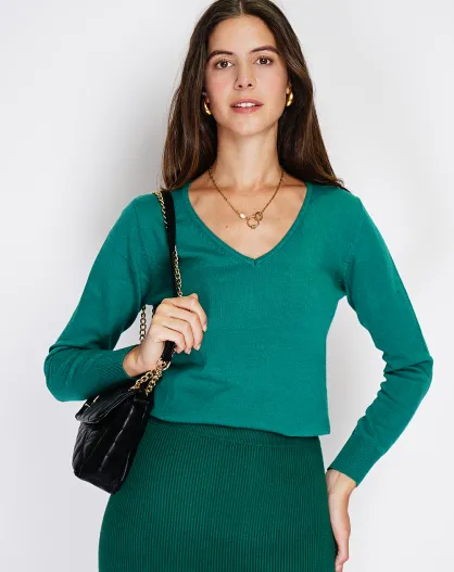 Pull en Cachemire mélangé Jina vert amazone