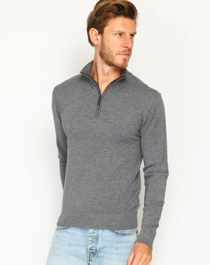 Pull 100% Cachemire John col camionneur gris anthracite/marine