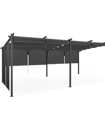 Pergola Marina en acier avec toit rétractable et 6 stores gris 3x6m