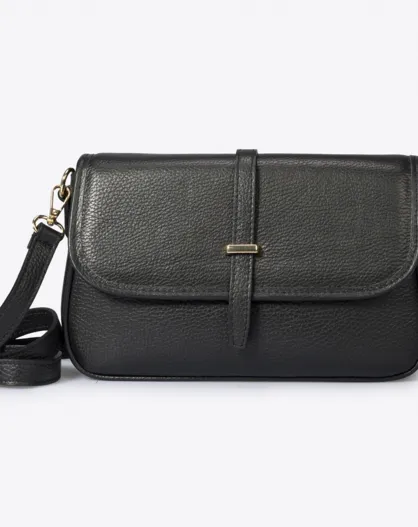 Sac bandoulière en Cuir noir - 27x8x16 cm
