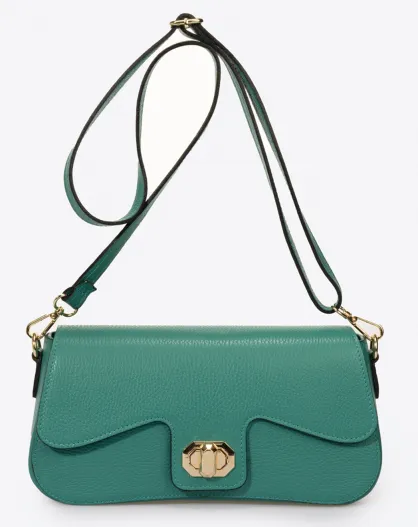 Sac bandoulière en Cuir vert d'eau - 27x8x15 cm