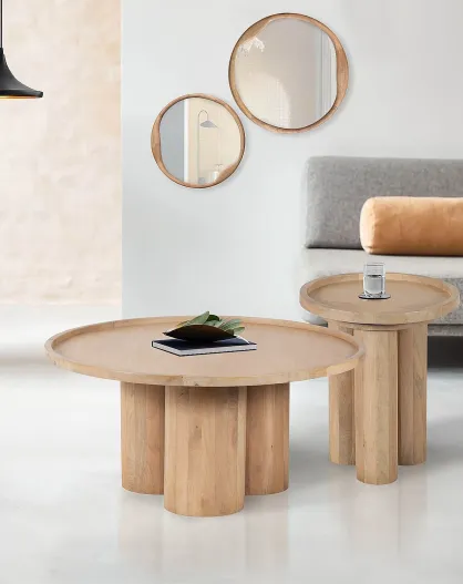 Table basse ronde Mango Barloo Beige - 89x89x43 cm