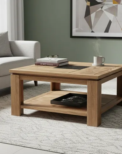 Table basse carrée bois sculpté bicolore Acacia Maya Naturel - 80x80x40 cm
