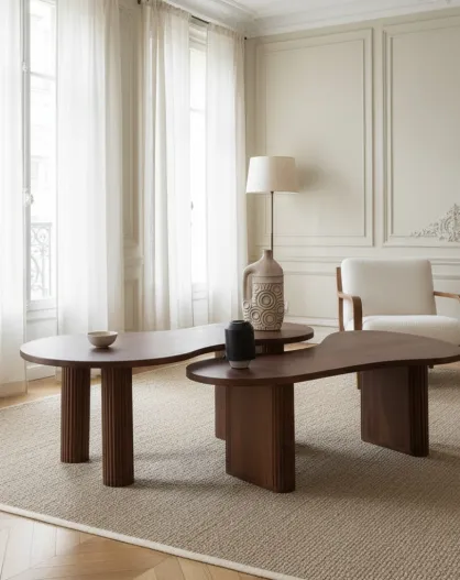 Set de 2 tables basses ovales Acacia Arad Marron - 110x60x40 cm et 110x60x35 cm