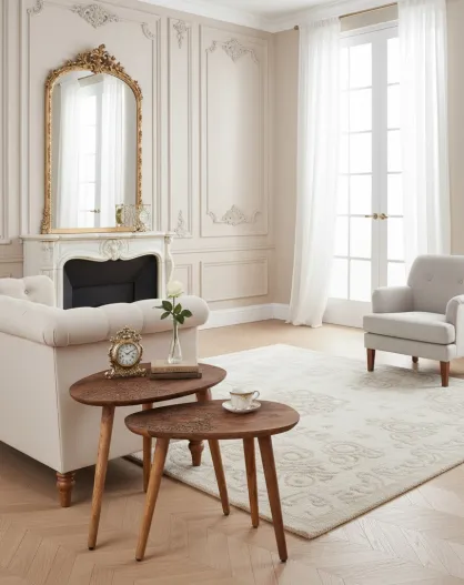 Set 2 tables d'appoint plateau sculpté bois massif Acacia Adir Marron - 58x40x46 cm