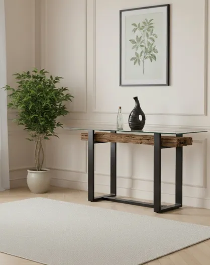 Console bois recyclé et métal Bois recyclé Sufa Naturel - 150x50x76 cm