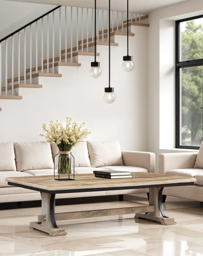 Table basse rectangulaire Manguier Pondicherry Beige - 130x65x40 cm
