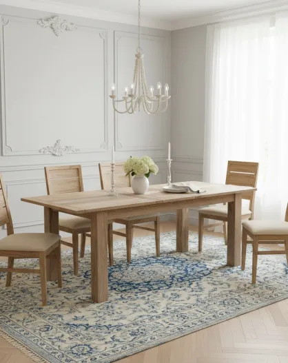 Table à manger plateau cannage 180 rallonge 40 Acacia Tatoo II Beige - 180x90x77 cm