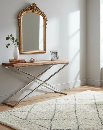 Console 140cm pieds en x stainless ii Beige - 140x40x80 cm