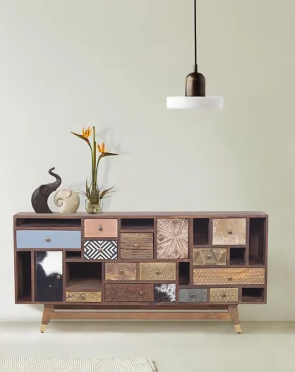 Buffet tiroirs peau de vache bois sculpté Manguier Terranova