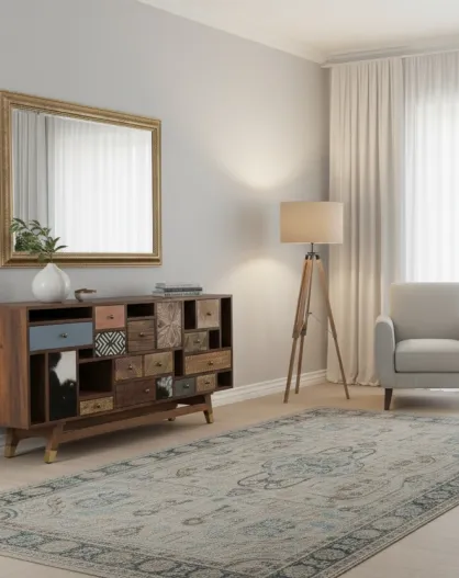 Buffet tiroirs peau de vache bois sculpté Manguier Terranova Naturel - 160x40x75 cm
