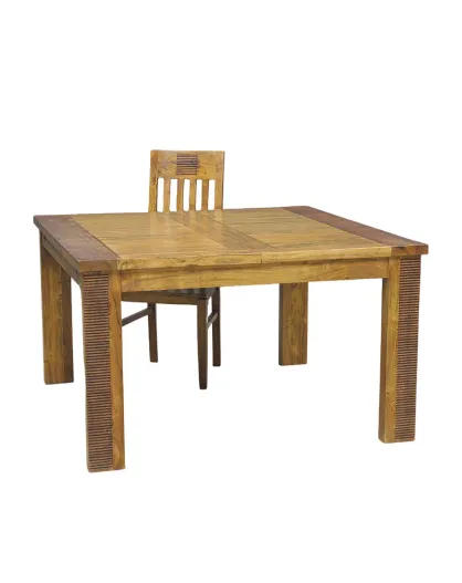 Table de repas carrée allonge bois strié Acacia Verone Naturel - 130x130x76 cm