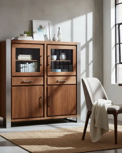 Meuble haut structure inox Acacia Stainless III Marron - 140x45x160 cm