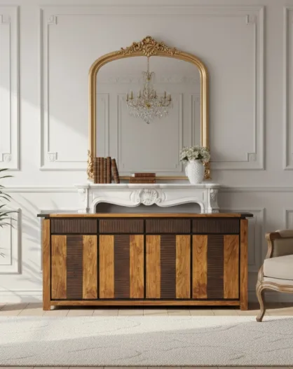 Buffet 4 Portes 4 Tiroirs Acacia Moon Marron - 200x45x85 cm