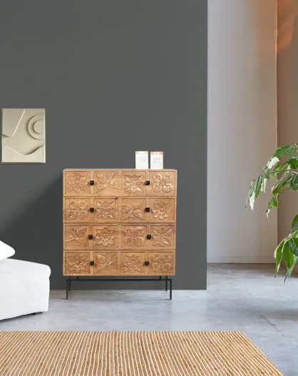 Commode sculptée 4 tiroirs Manguier Sculture Beige - 85x42x100 cm