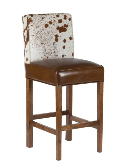 Chaise de bar en acacia et peau de vache Acacia Savage