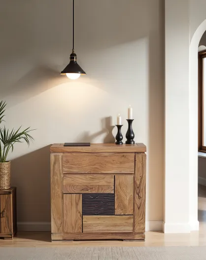 Confiturier bois sculpté bicolore 1P 1T Acacia Maya Beige - 77x40x80 cm