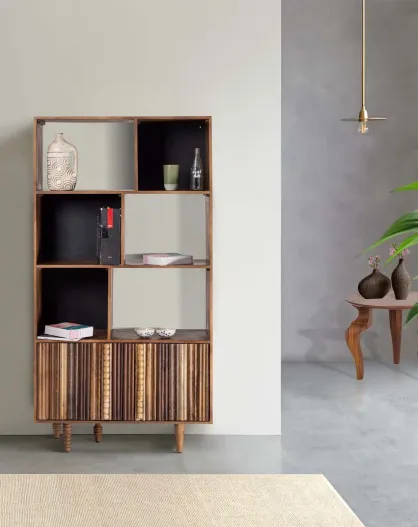 Bibliothèque ouverte 2 portes Manguier Ramon Naturel - 90x40x175 cm