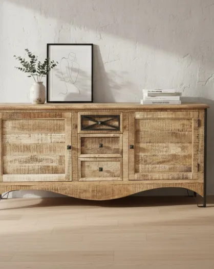 Buffet 2 portes 1 tiroir Manguier Pushkar Naturel - 90x40x86 cm