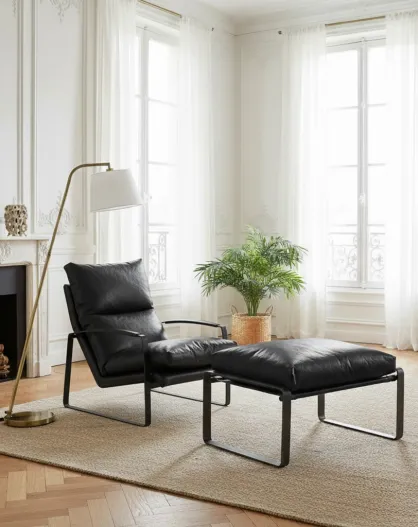 Damo black pouf Leather Noir - 68x46x35 cm