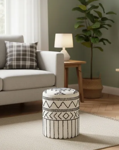 Pouf tribal 55 cm de haut Acacia M&M offer Gris argent - 40x40x55 cm