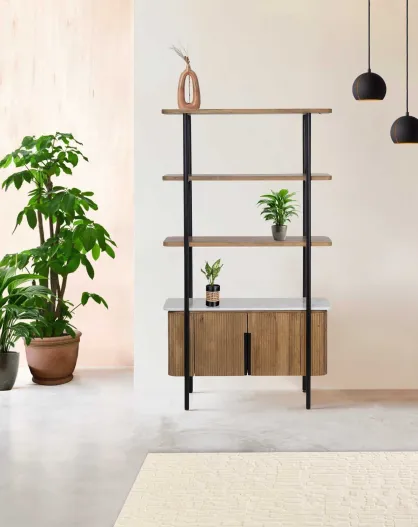 Étagère 2 portes plateau marbre blanc Manguier Kfir II Naturel - 95x40x170 cm