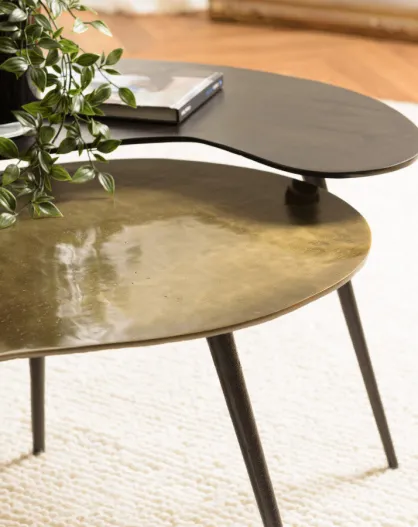 Set de 2 tables basses ovoïdes en aluminium noir mat et doré