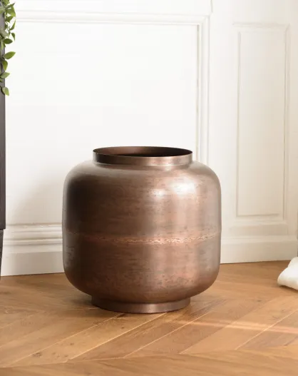 Vase largeur 39cm hauteur 38cm acier couleur bronze cuivré